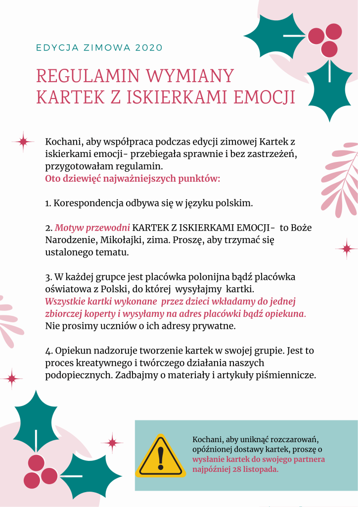 - Wyślij kartki nie później niż 28 listopada.
